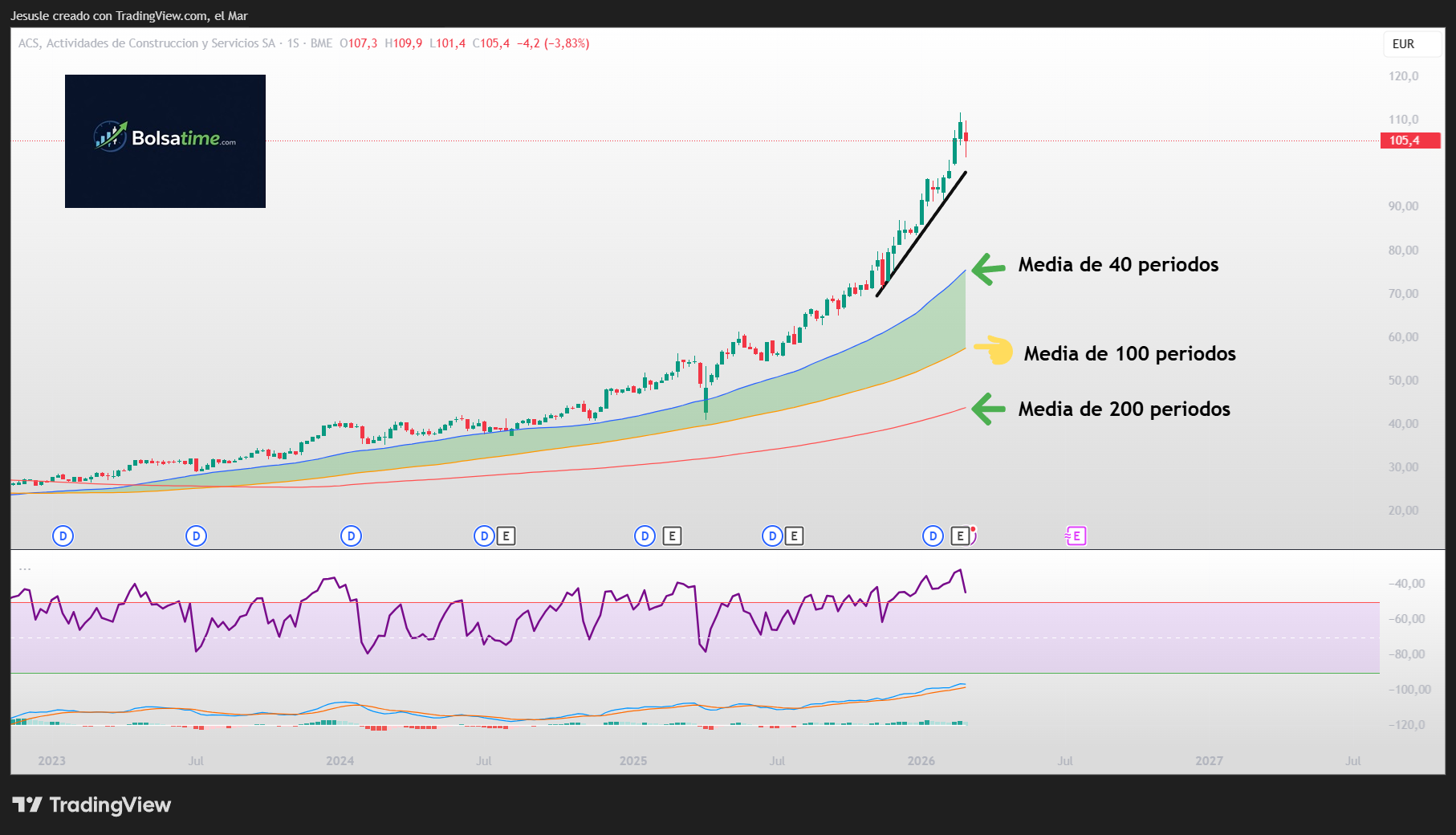 Por la parte baja, me fijaría en la zona de los 100 – 98 €. Sobre ella pasa la directriz alcista que viene desde el pasado mes de noviembre del año 2025. No sería una buena señal de muy corto plazo ver que la visita para realizar una pérdida.