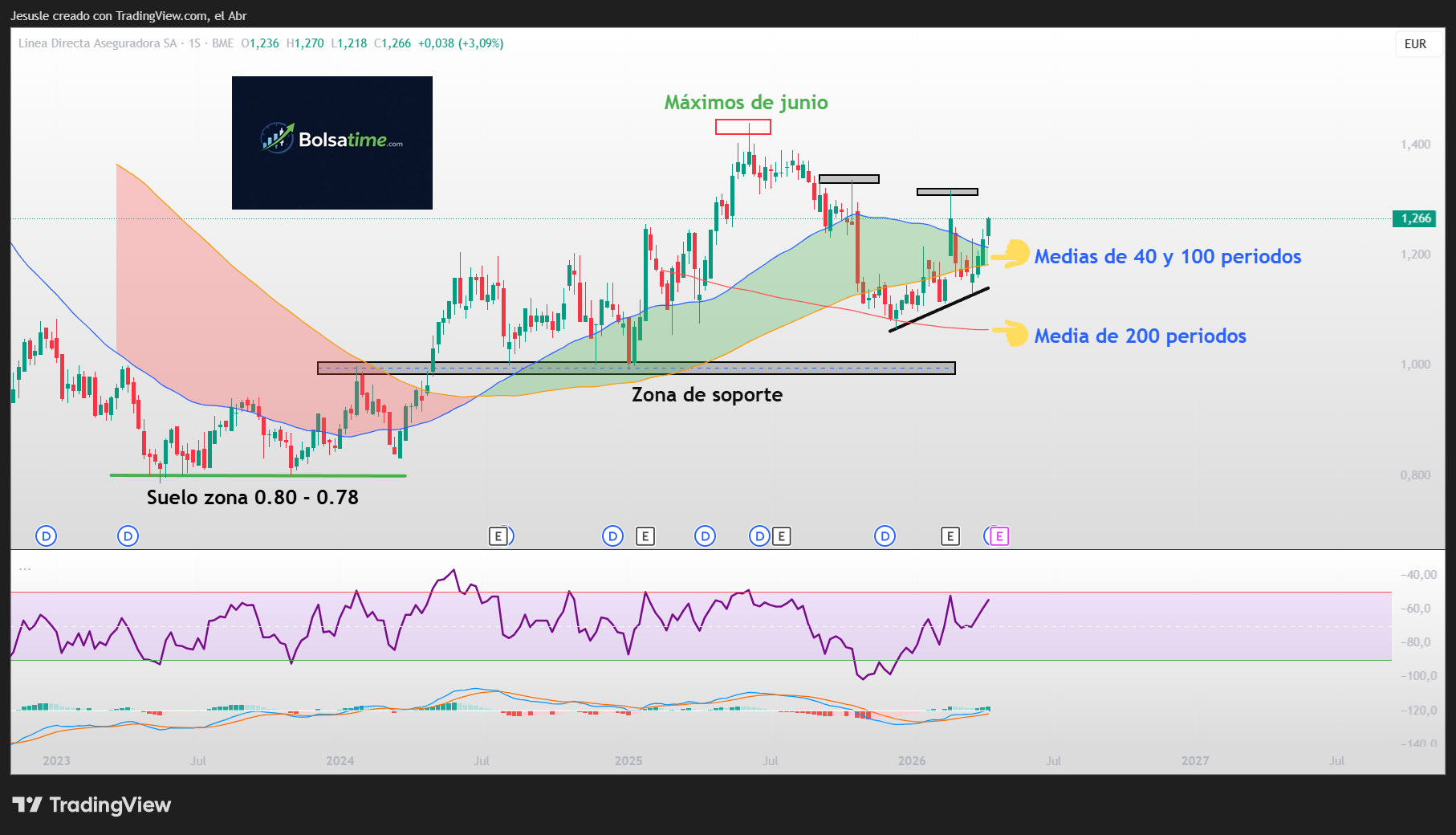 Esa nos debería hacer de fuerte soporte a su visita, tal como hizo en el mes de diciembre del año 2025. Si no fuera así y se pierde, sería una muy mala señal bajista sobre las acciones de Línea Directa Aseguradora.