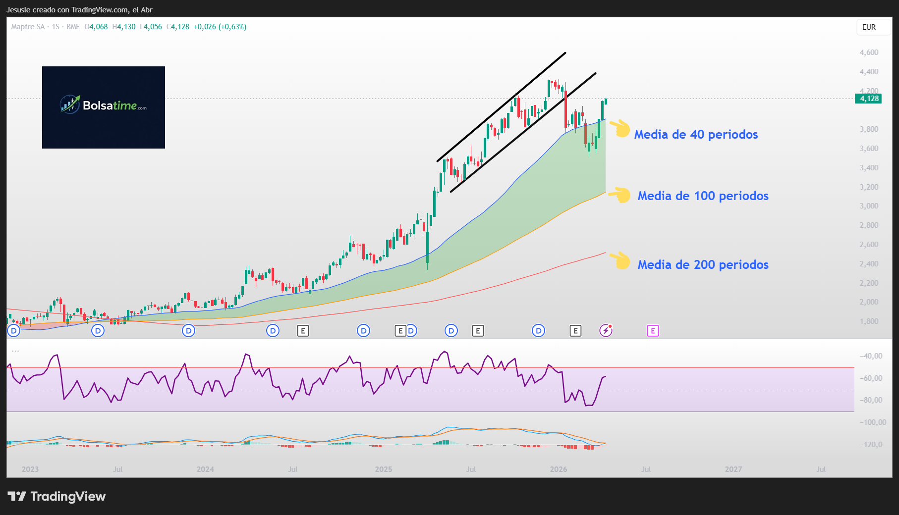 Al ver el gráfico de las acciones de Mapfre, se puede observar cómo no tenemos cambios en el corto plazo; sigue siendo totalmente válida la recuperación actual, lo cual es una buena señal. Vamos a ver si ese movimiento puede continuar en las siguientes sesiones.