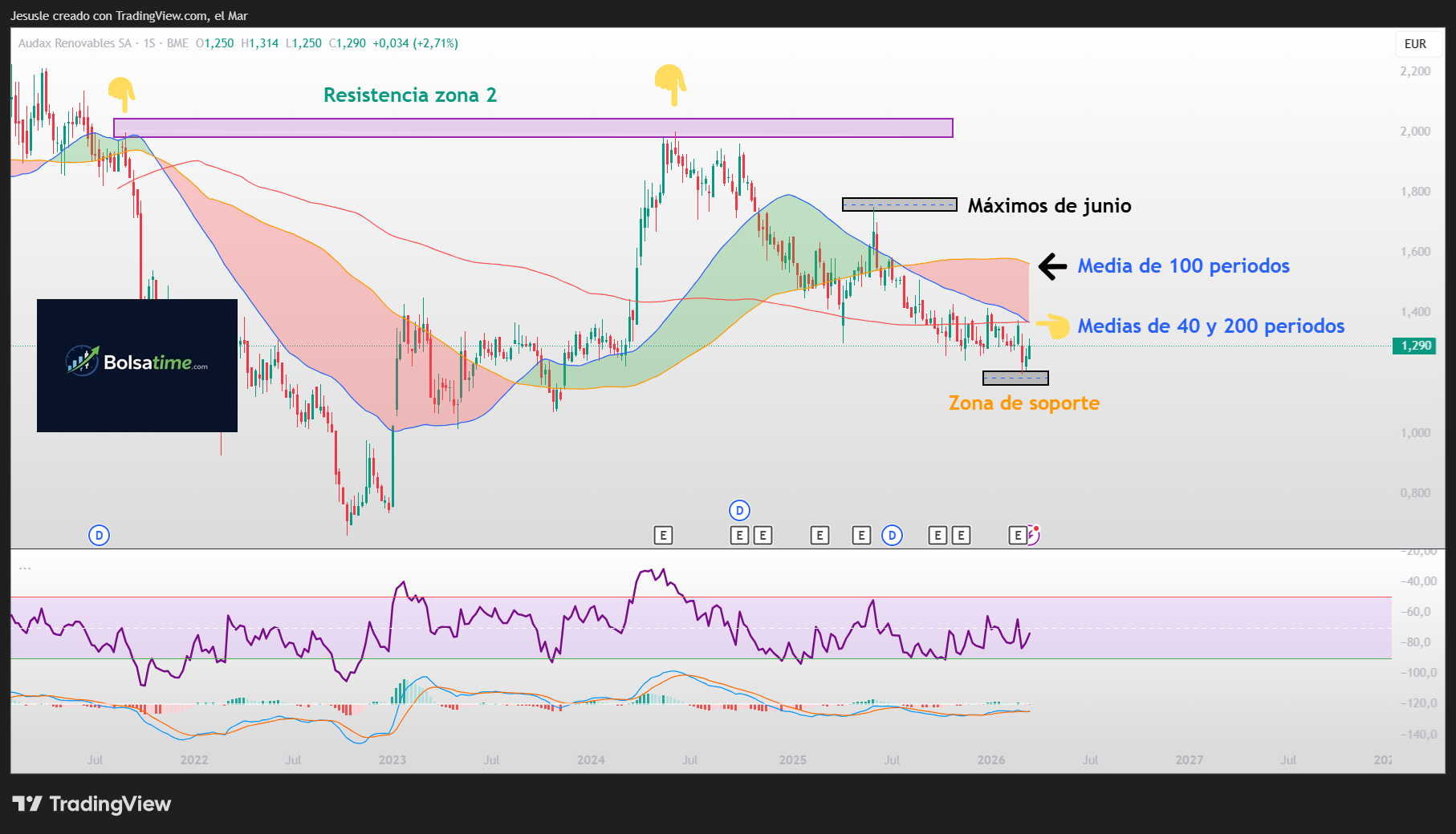 Grafico semanal analizado sobre las acciones de Audax Renovables