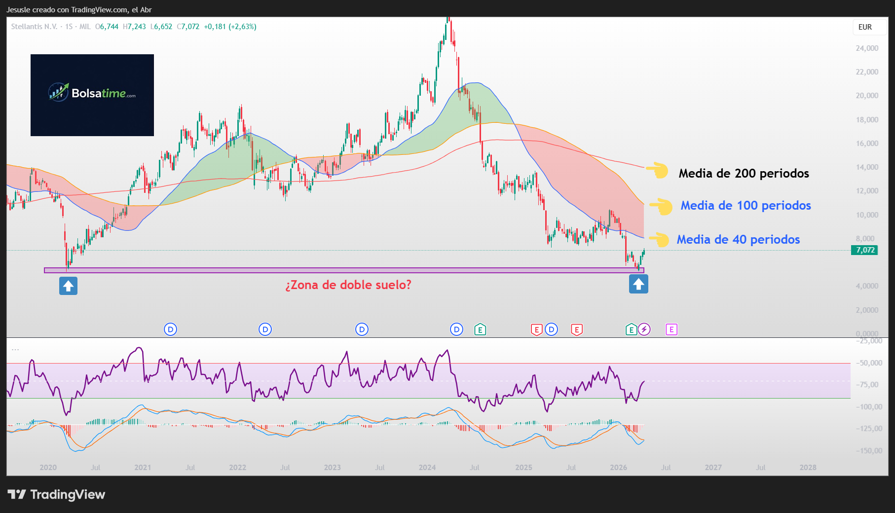 Grafico semanal analizado sobre las acciones de Stellantis